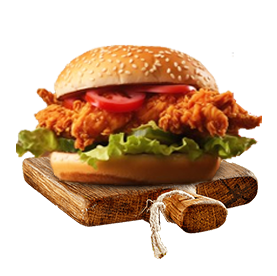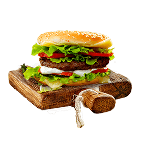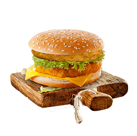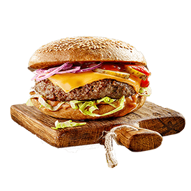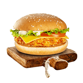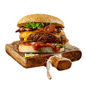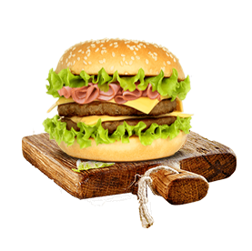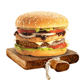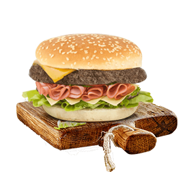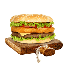 Steak 90gr, poulet pané, salade, tomates, 2 cheddar, sauce mayo.